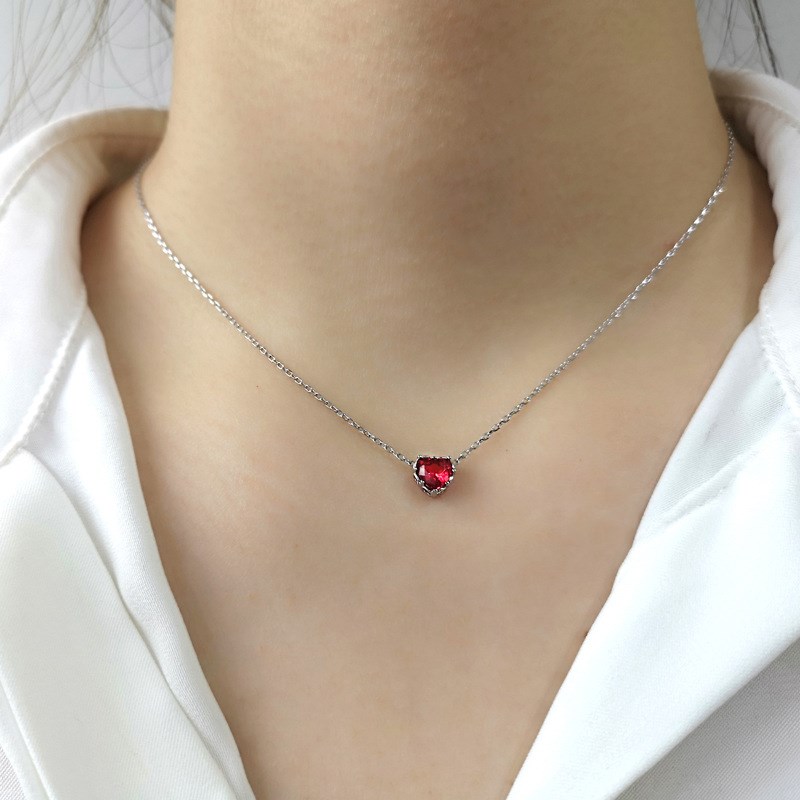 Elevate your style with our exquisite heart-shaped pendant necklace, a true embodiment of love and elegance. Crafted from high-quality S925 sterling silver, this necklace features a stunning dark red zircon that sparkles with every movement, making it the perfect accessory for any occasion.