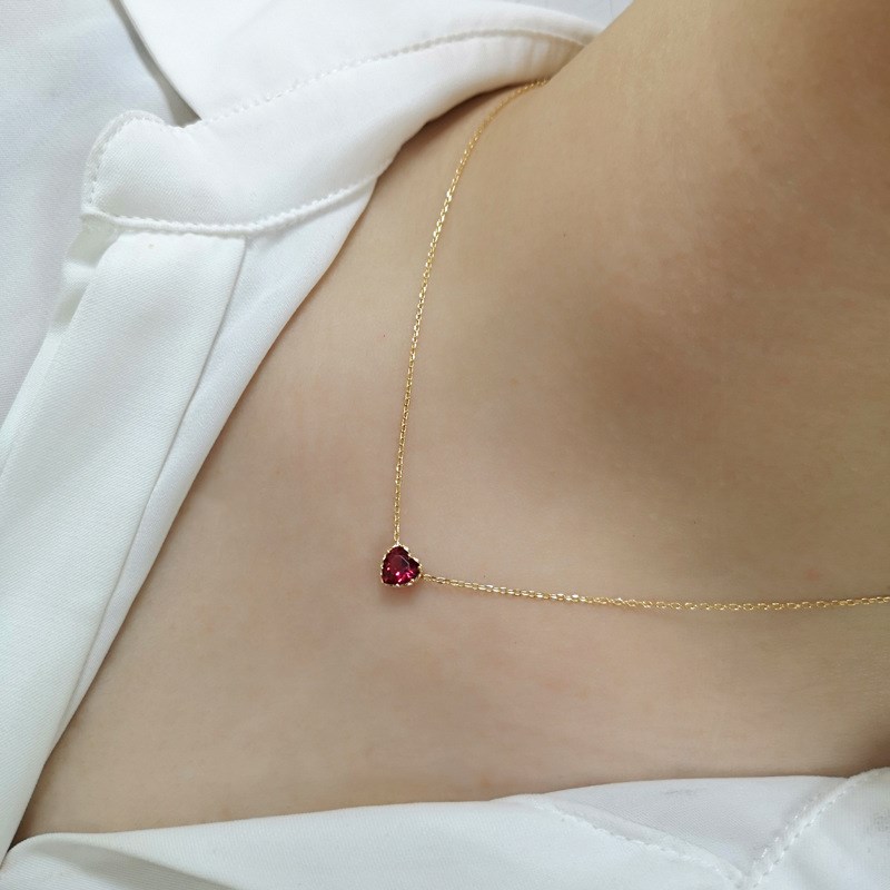 Heart Pendant Necklace with S925 Silver and Garnet Stone