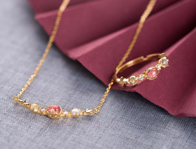 Discover the exquisite beauty of our pure silver S925 and 18K gold plated jewelry collection. This stunning necklace and ring set features a captivating blend of natural tourmaline, lemon crystal, sky blue mop, and delicate small zircon inlays, perfect for adding a touch of elegance to any outfit.